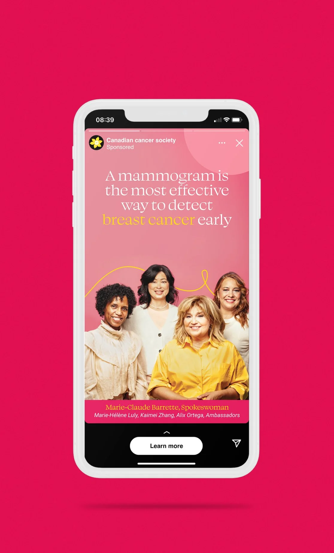 As Senior Digital Art Director at Lemieux Bédard, I led the creative revival of the Mémo‑Mamo campaign for its 12th year. After a two-year hiatus, we refreshed the campaign with a completely new look and feel, focusing on encouraging women to get mammograms through positive, factual messaging.